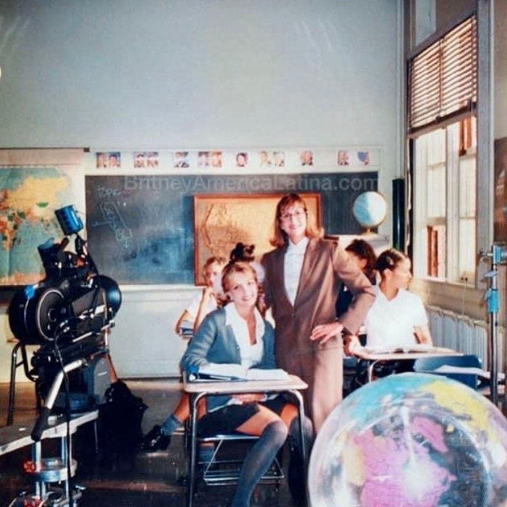 Бритни Спиърс на снимачната площадка на музикалния видеоклип към „Baby One More Time“. Снимка: Instagram/ @feliciaculotta1