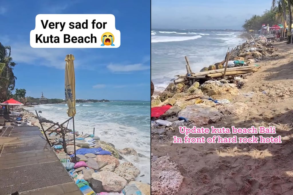 Мощни вълни погълнаха големи участъци от емблематичния плаж Кута на Бали, предизвиквайки нова загриженост за бъдещето на индонезийски най-известната пясъчна ивица на острова.