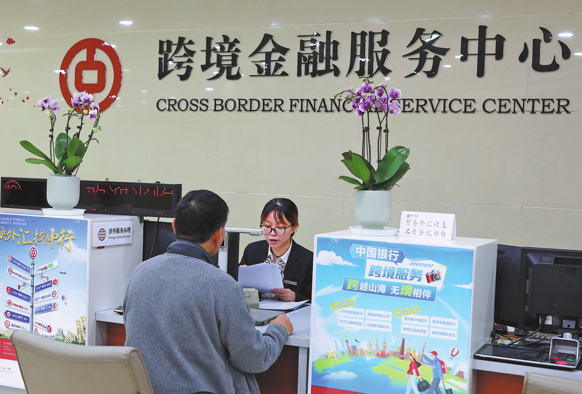 Банков служител в Чунцин помага на клиент с неговия трансграничен финансов бизнес. [Photo provided to CHINA DAILY]