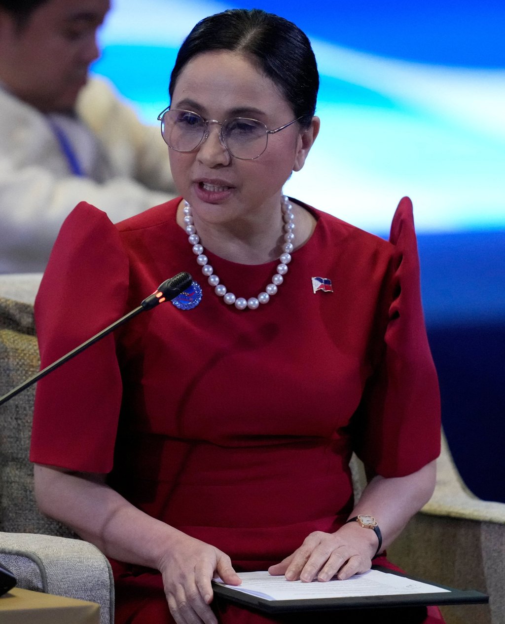 Търговският секретар на Филипините Кристина Роке говори по време на срещата на АСЕАН в петък. Снимка: Ройтерс