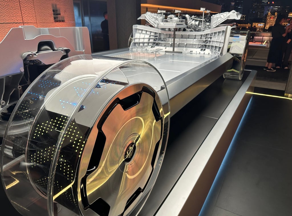 EV шаси е показано на събитието на Leapmotor за представяне на D19 SUV в Шанхай в четвъртък. Снимка: Даниел Рен