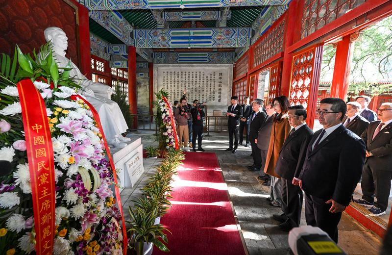 ПЕКИН – Cheng Li-wun, председател на китайската партия Гоминдан (KMT), ръководи делегация на KMT в събота, за да отдаде почит на Сун Ятсен, велик предшественик на демократичната революция в Китай, в кенотафа в Пекин.