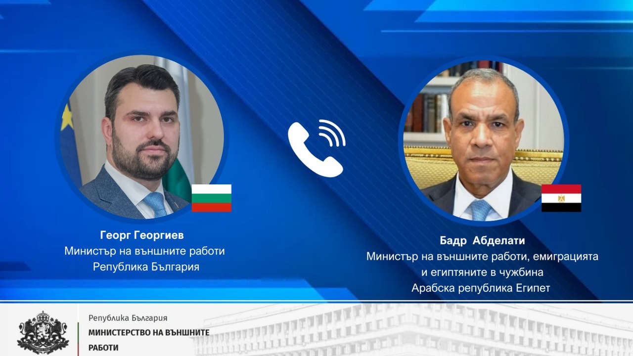 Министър Георг Георгиев проведе телефонен разговор с министъра на външните работи, емиграцията и египтяните в чужбина на Арабска република Египет, Бадр Абделати. Разговорът бе втори по ред, след като двамата разговаряха преди малко повече от месец.
