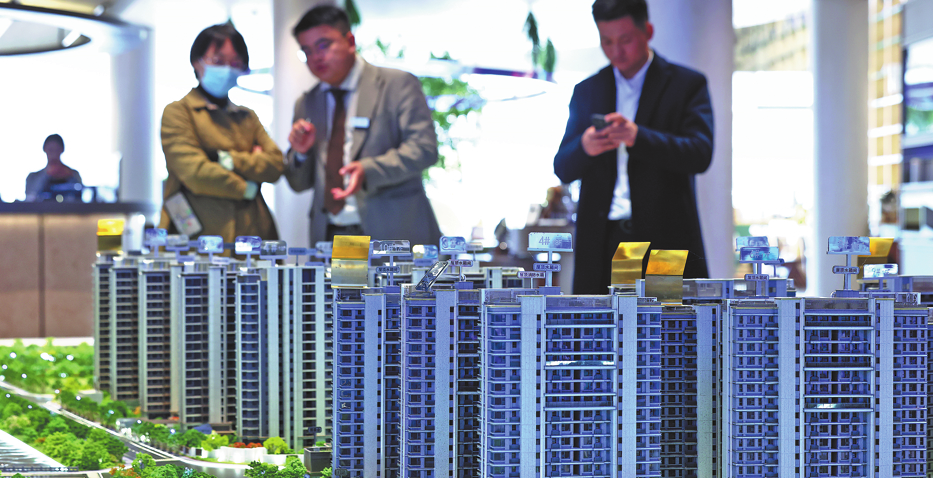 Потенциалните купувачи на жилища разглеждат модел на имоти в Шанхай. КИТАЙ ДЕЙЛИ