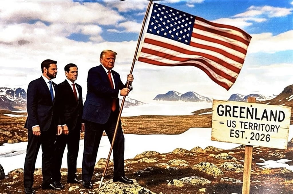 Тръмп каза, че трябва да притежава Гренландия от съображения за сигурност и по-рано във вторник публикува изображение, генерирано от AI, на което забива американско знаме на острова.