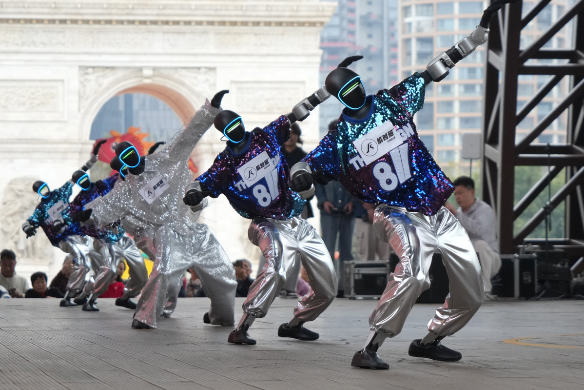 Роботите Unitree изпълняват бойни изкуства и танцуват в тематичния парк Window of the World в Шенжен, 17 февруари 2026 г. [Photo by Zhou Guoqiang/for chinadaily.com.cn]