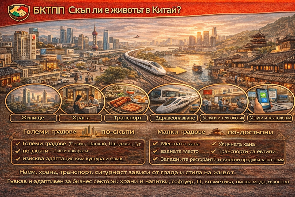 Животът в Китай не е еднозначно скъп или евтин – той е гъвкав и силно зависим от избора на град и начин на живот. За чужденци и бизнеси Китай предлага високо качество на живот, модерна инфраструктура и отлични възможности, особено при дългосрочно присъствие и международна търговия в сектори като храни и напитки, софтуер, IT, козметика, висша мода и селско стопанство, където страната е водещ глобален партньор.
