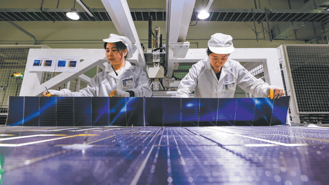 Служителите работят по експортни поръчки за фотоволтаично оборудване в нова компания за енергийни технологии в Suqian, провинция Jiangsu, в понеделник. XU CHANGLIANG/ЗА КИТАЙ ДАЙЛИ