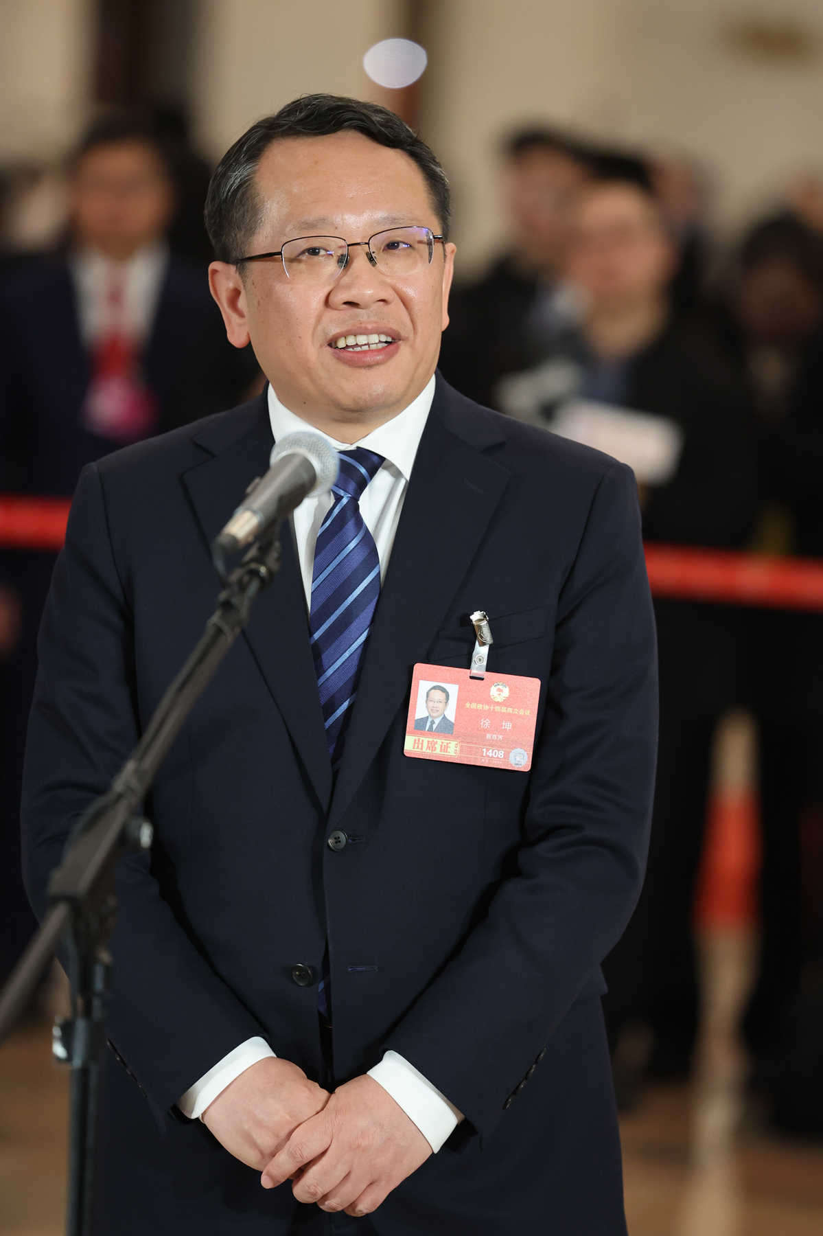 Xu Kun, член на 14-ия Национален комитет на Политическата консултативна конференция на китайския народ (CPPCC), присъства на групово интервю преди заключителната среща на четвъртата сесия на 14-ия Национален комитет на CPPCC в Голямата зала на народа в Пекин, 11 март 2026 г. [Photo by Kuang Linhua/chinadaily.com.cn]