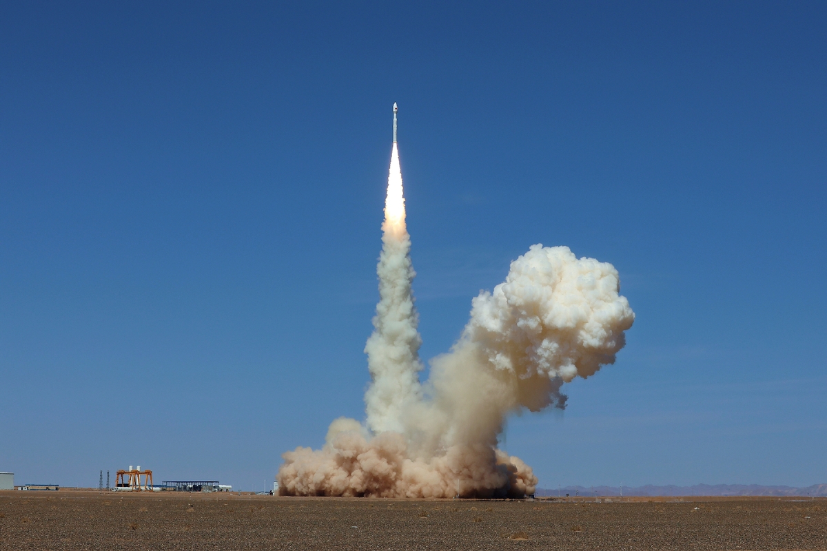 Ракета Kinetica 1, носеща осем сателита, излита от сателитния център Jiuquan в пустинята Гоби в северозападен Китай, 14 април 2026 г. [Photo/Xinhua]