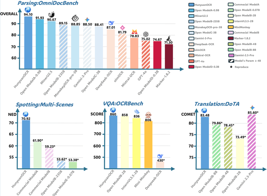 ШЕНЖЕН – Големият моделен екип на Tencent Hunyuan официално пусна HunyuanOCR с отворен код, специализиран лек визуален езиков модел за оптично разпознаване на символи (OCR), съдържащ само 1 милиард параметъра.